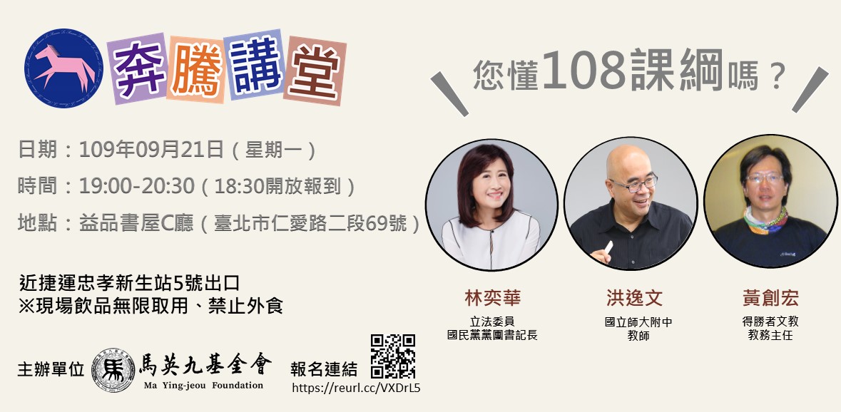 本次奔騰講堂邀請了專精教育的立法委員林奕華、師大附中老師洪逸文,以及得勝者文教機構老師黃創宏,為您說明108課綱的來龍去脈,以及學生老師們的因應之道。
